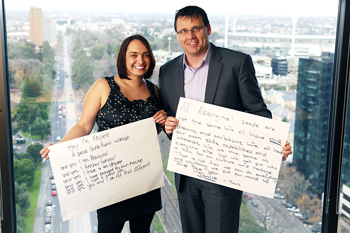 “Hey, I’m Kaylene I am a proud Gunai Kurni woman, and yes I am Aborigina, and yes I finished school, and yes I have a uni degree, and yes I have bought my own house, and yes I have a great job and yes you and I are not that different.”