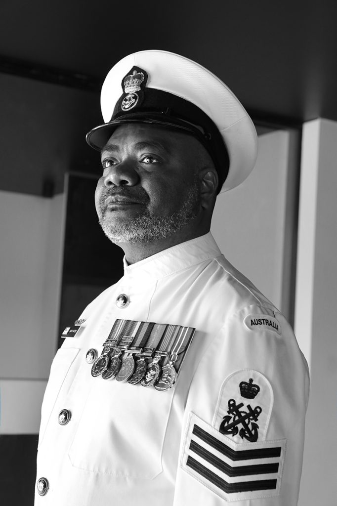 Photograph by Belinda Mason OAM 2022, inkjet on brushed aluminium 60cm x 40cm Butchulla (Mother), South Sea Islander (Father) Chief Petty Officer MTDMarine Technician DieselRoyal Australian Navy Defence Force Service Medal with 2nd claspAustralian Defence MedalHMAS Cerberus Commanding Officer’s Commendation – for long and loyal service to RAN (1994) “If you think you have the […]…