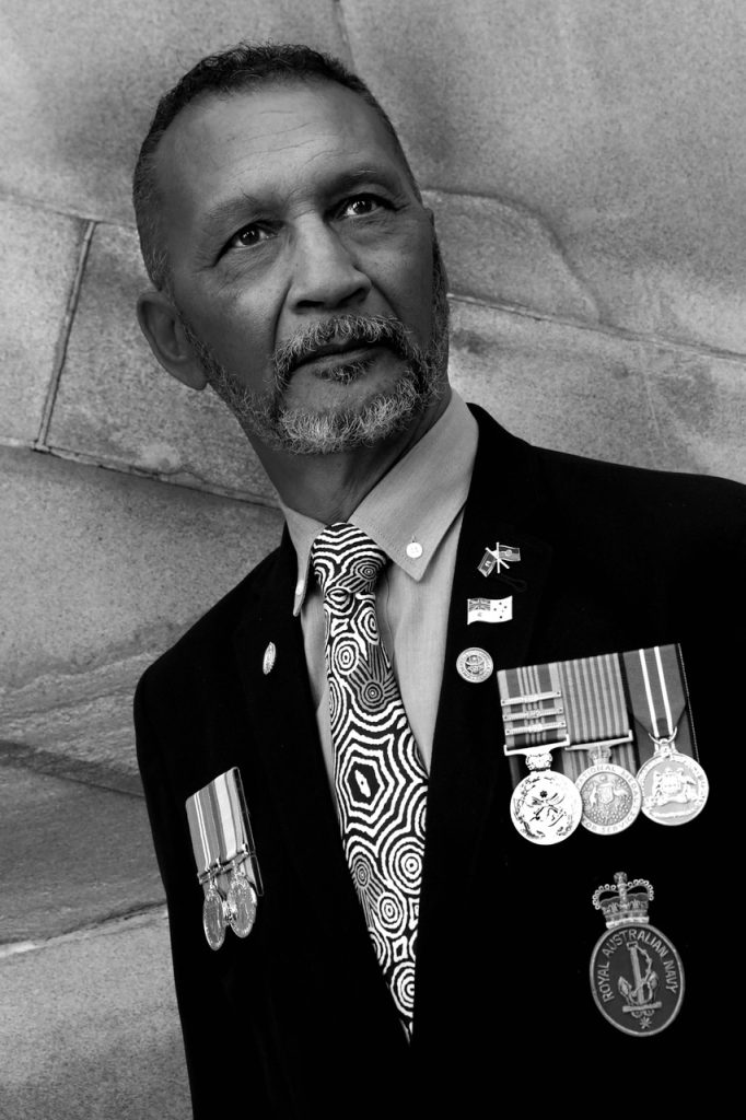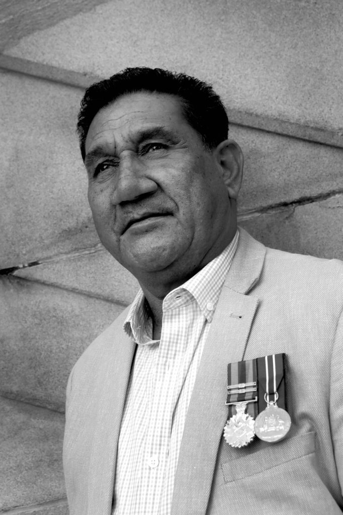 Photograph by Belinda Mason OAM 2022, inkjet on brushed aluminium 60cm x 40cm Descendant of Kanaks from Pentecost Island (Grandfather) – Descendant of Aboriginal and South Sea Islands (Grandmother) PrivateRoyal Australian Infantry CorpsAustralian Army Australian Defence MedalAnniversary of National Service 1951-1972 Medal “The Army opened up a lot of doors. It gave me a war […]…